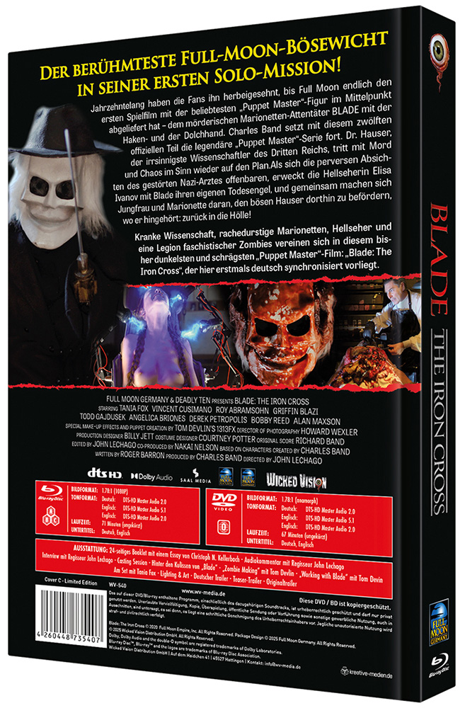 Kranke Wissenschaft, rachedurstige Marionetten, Hellseher und eine Legion faschistischer Zombies vereinen sich in diesem bisher dunkelsten und schrägsten „Puppet Master“-Film: „Blade: The Iron Cross“, der hier erstmals deutsch synchronisiert vorliegt.