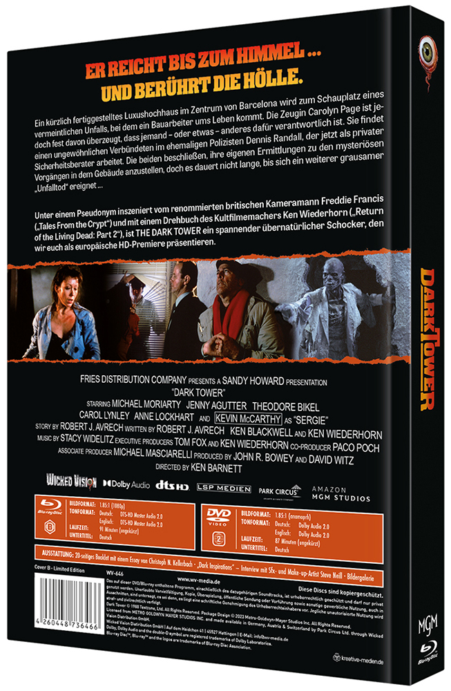 Unter einem Pseudonym inszeniert vom renommierten britischen Kameramann Freddie Francis („Tales From the Crypt“) und mit einem Drehbuch des Kultfilmemachers Ken Wiederhorn („Return of the Living Dead: Part 2“), ist THE DARK TOWER ein spannender übernatürlicher Schocker, den wir euch als europäische HD-Premiere präsentieren.