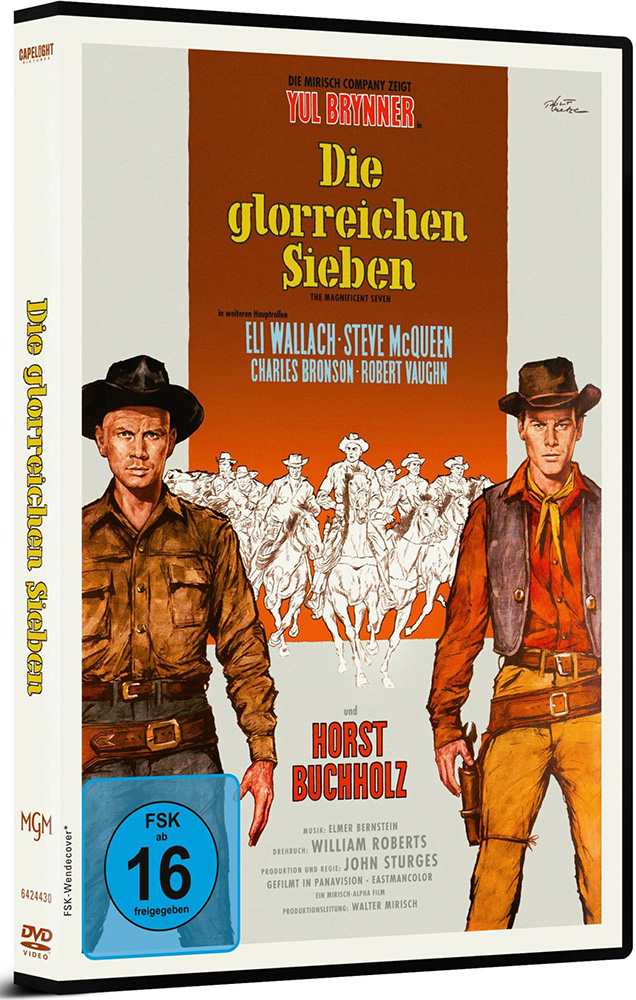 - "Die glorreichen Sieben" im limitierten Mediabook (4K Ultra HD + Blu-ray + Bonus-Blu-ray) enthält den Film erstmals europaweit in 4K auf UHD-Blu-ray (mit Dolby Vision und HDR10), in Full HD auf Blu-ray, eine Bonus-Blu-ray mit umfangreichen Extras und ein 24-seitiges Booklet mit einem Text von Wolfgang Frömberg.
