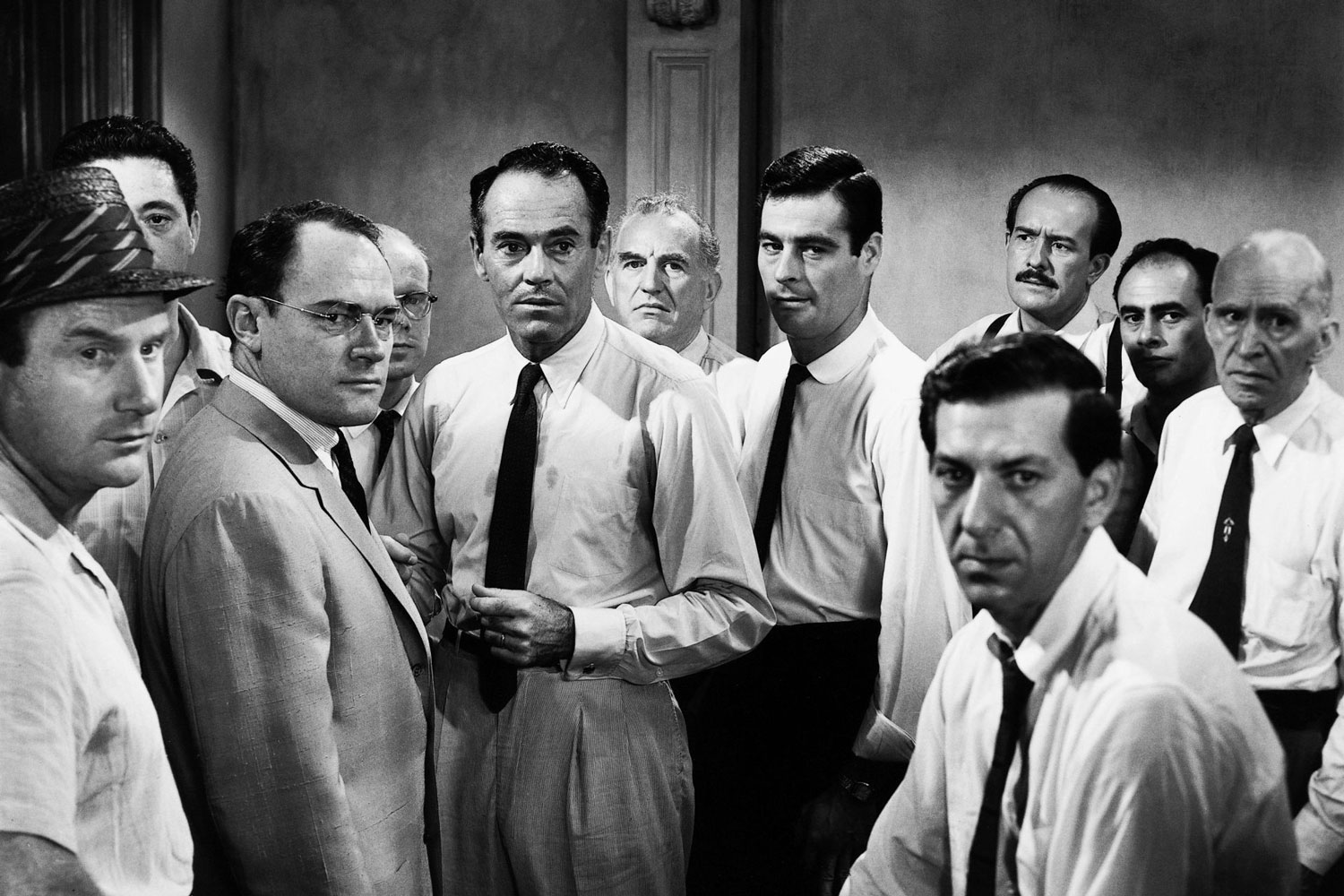 Im Anschluss an einen Mordprozess ziehen sich zwölf Geschworene in ein Hinterzimmer des Gerichts zurück, um über einen jungen Mann zu urteilen, der seinen Vater getötet haben soll. Die Sachlage scheint eindeutig gegen den Angeklagten zu sprechen, für den ein Schuldspruch die Todesstrafe bedeuten würde. Einzig der Geschworene Nummer 8 (Henry Fonda) hat begründete Zweifel und plädiert auf nicht schuldig. Mit seiner Stimme, die genügt, um den Beschuldigten vorerst vor dem Schlimmsten zu bewahren, entfacht er unter den Jurymitgliedern eine hitzige Diskussion über Schuld, Unschuld und die Tragweite eines möglichen Fehlurteils. Doch auch ein Freispruch kann nur einstimmig erzielt werden.